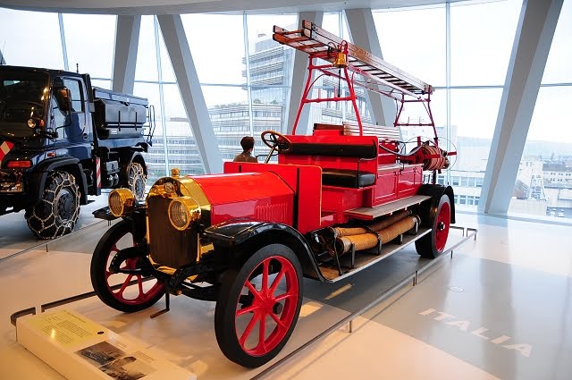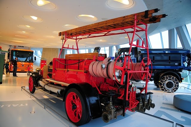 收藏螺旋的第三展區是工具車輛,比方說消防車。當初Daimler發明消防車的時候,各消防局都不信任這個新發明,認為汽油會爆炸。但是消防車有引擎的幫助,不但移動快,汲水的效率遠勝於當時以人力及馬匹拉著水桶移動的方法,所以一旦有地方消防局試用,很快地就普及到各地了。