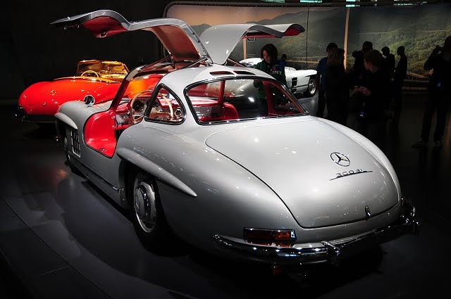 為了克服車身剛性的弱點,設計師以鋼管穿過門檻補強結構,卻造成無法以傳統方式開門,不得已只好將車門改成上掀式。這無心插柳的一筆卻成為經典,一直到最新的超跑SLS都仍仿效這個作法。