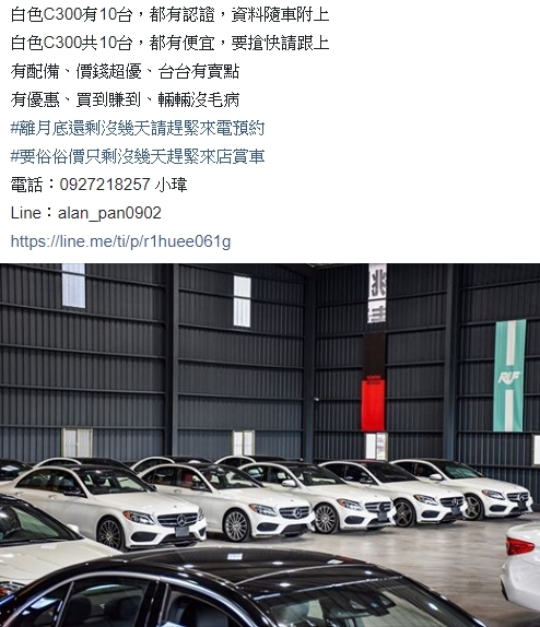 小澤60218 wrote:這種車商業配風氣 可...(恕刪) 中肯到不行,直接打臉假開箱。當初我也是遇到這種自捧車商牽了一台外匯C300改天有空在貼心得。總之那間桃園車商我也是笑笑老船X、什麼goo鑑定優質商家的,看看就好。總之買二手車還是找自己熟識,或者離家近且有經營長時間的車商好一些。當然還好有多點,都是這次花錢買的教訓阿~