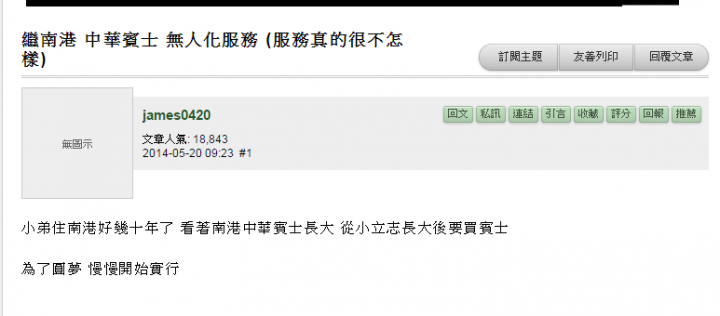 Scott610529 wrote:剛滿18歲從事兩...(恕刪) dannyETTC wrote:來返兩岸你有考...(恕刪) 大大們敢酸他,真是好膽識! 沒看到他之前輝煌的戰果嗎? 還是你們也要他包紅包給你!