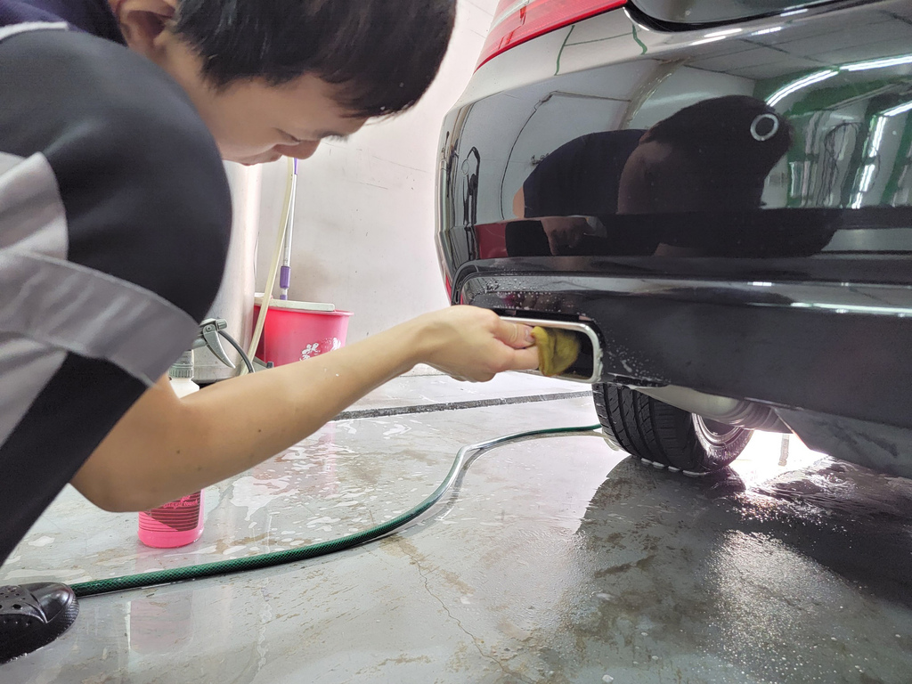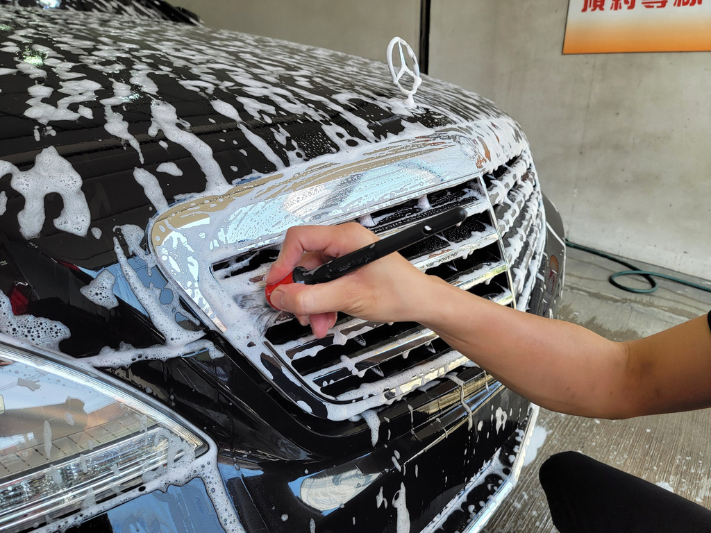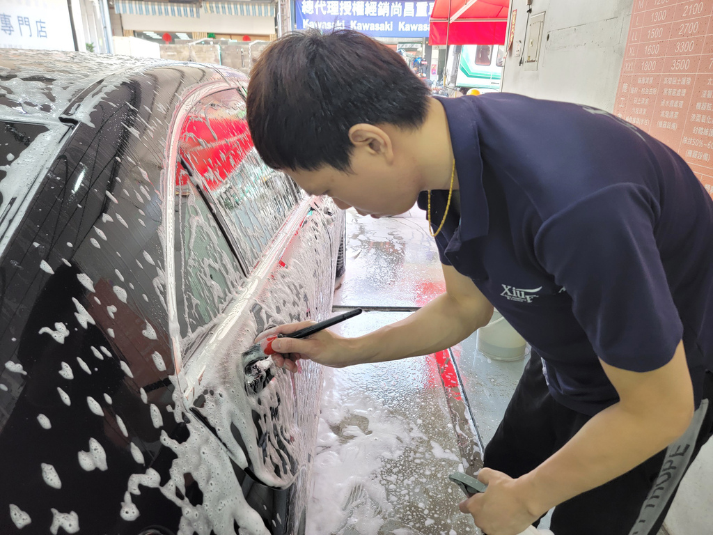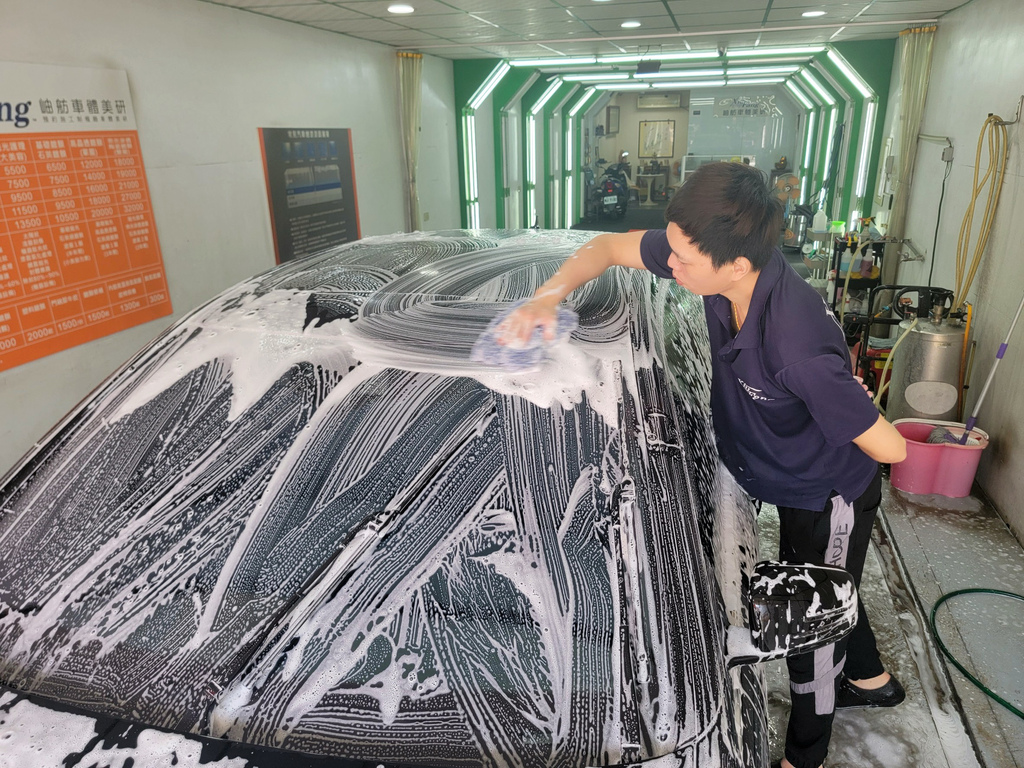 ▼老闆洗車非常細心,使用專業的洗車劑、海綿和洗車工具,仔細清洗車身,每一個細節都不放過。