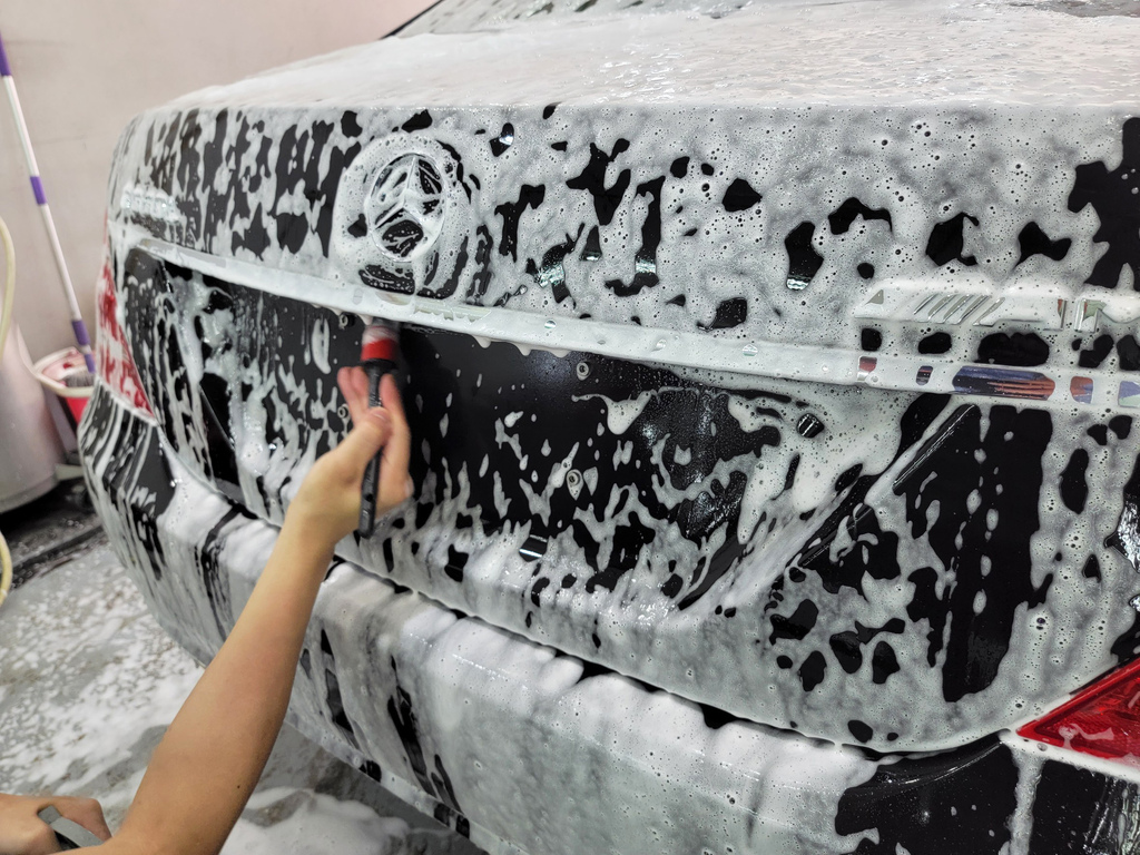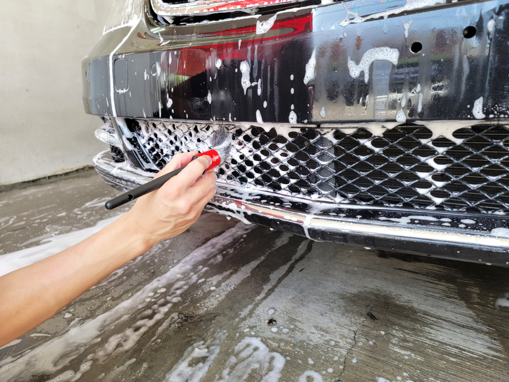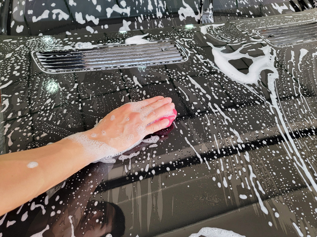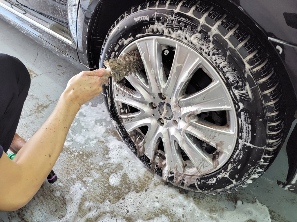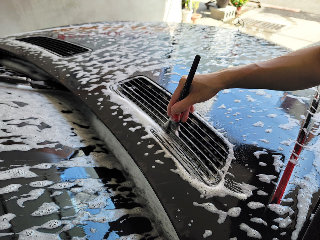 ▼老闆洗車非常細心,使用專業的洗車劑、海綿和洗車工具,仔細清洗車身,每一個細節都不放過。