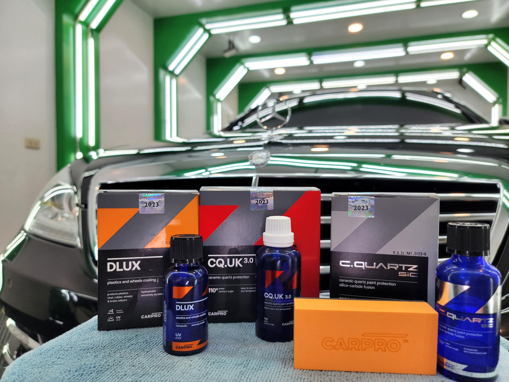 ▼根據車子的車漆、塑件等部位使用不同的CarPro鍍膜劑。