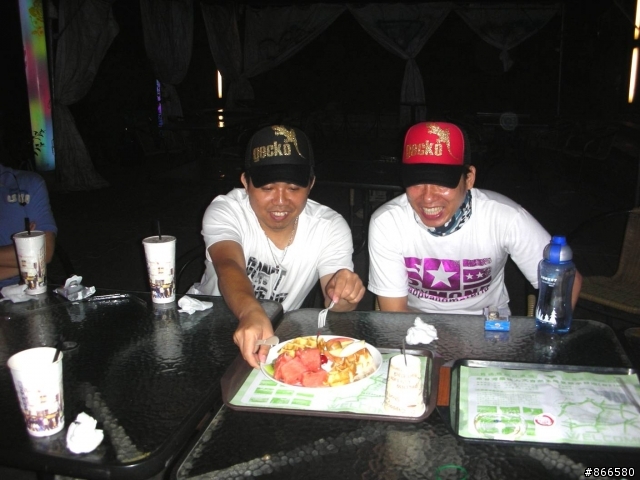 金歹勢....不專業的我現在才來交作業...拍的不好也沒拍幾張...加減看囉...1.經過一坡又一坡的坡....終於到了終點大家準備停車喝咖啡聊是非囉...可是...可是....我已經快不行了..2.選好位置大家lds3.今天可真是花好月圓...真是個騎車的好日子可惜我的照相機不夠專業....4.閃閃亮亮兄弟檔---我們的團長阿Ken跟Andy---聽說是小開喔..至於什麼的小開...是秘密...想知道的自己來問他們給個提示跟他們穿的衣服.帽子一樣會閃閃亮亮的...不多說了...不然會被封口...5.詐騙集團的主嫌"湯米"正滔滔不絕的訴說的的環島史....應該啦...我亂講的...哈!6.當我們講的正開心的時候服務生端來了鬆餅..旁邊還點了跟仙女棒...好浪漫喔原來過了12點就是Andy的生日了就感心的大哥阿ken特地為他點了個鬆餅代替蛋糕好特別的蛋糕喔...7.切蛋糕囉....在大家幫他唱完五音不全的生日歌及怎麼吹都吹不熄的蠟燭後開始"切蛋糕"囉8.今天的"..蛋糕.."有沒很特別相信這是一個很難忘的生日吧9.吃蛋糕了...拍張合照吧....對不起大叔...我只看到旁邊青春的肉體....把你忽略掉了.....10.再來補一張吧...不過這麼會這麼亮.....11.趁著榮少在教服務生怎麼幫我拍時...偷偷拍一張大家果然是專業了....除了小程沒看鏡頭外...大家都看鏡頭了2.花生什麼事....原來是有人破胎了....聽說是第一破那是要說我幸運能參與到第一破...還是真的我帶賽....結論....好久沒騎這麼遠也好久這麼晚騎車了晚上騎車的感覺還真不錯....因為平常時間對我來講太晚了下次有機會會再來的 襲滅阿來 wrote:Hi SUSAN...(恕刪) ok...ok...那下次我要來騎要先跟你們講囉才不會又被海放在後面...