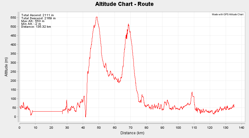 過了十分之後,路線開始扶搖直上,上升到約520公尺就開始下坡,如高度圖中右邊的山峰