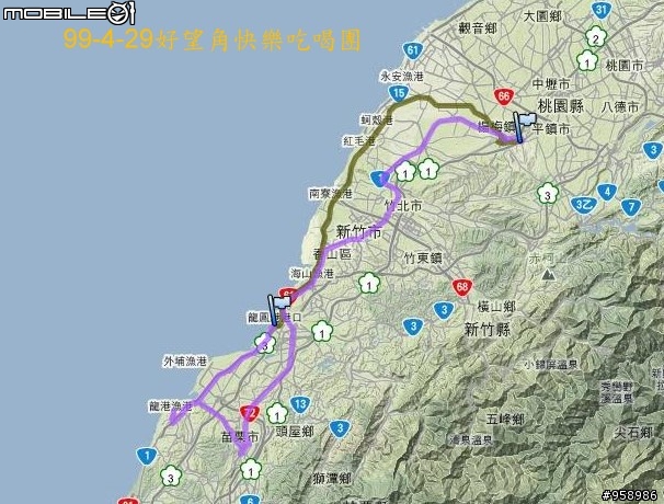 嘿嘿!!! 大伙辛苦啦!!!4/29的好望角超超臨時約騎,終於順利圓滿的完成啦!今天與會人員小傑和我二哥 . 反裝甲 . 老爹 . 烏龍 . 小阮感謝 反裝甲 精心規劃的路線<<探路行 辛苦啦!!>>還有老爹回程為我們準備的典藏咖啡 ^^"好望角"這邊的view 比之前 崎頂.後山電塔.大肚山......好上太多啦!難怪之前 車友 總以此 地標 作為目的地,楊梅出發 總里程約160km左右(雖然回程是苗栗坐火車,但是今天吃吃喝喝行程臨時變動,所以原先預定80km左右,卻也莫名其妙變成破百之旅104km)8:30分.........抵達會合點 楊梅分局旁便利商店..結果在9:00左右才正式出發 >.<今天的行程開始 ^^臨時更改路線home->楊梅火車站-->老飯店-->大坡-->西濱-->鳳鼻隧道-->南寮漁港路口和原先預定home->楊梅分局旁便利商店-->省道台一線 接新竹市區-->南寮漁港路口里程數 大約 34 -> 38km ,但是沿路順風南下 , 均速約30km這個路線不錯!!! 可以避掉 新竹市 的車潮!! 抵達預定點便利商店後,再往南行經過17公里海岸線,再往龍鳳漁港吃中餐11:30 <<看過反裝甲po的照片別流口水>> ,這次因為 順風南行 所以比前次 大甲之旅<<龍鳳漁港用餐>>時間早了約一個小時,公路車<領先集團>.......登山車<落後集團>兩人成雙........三人 可以成團了吧!! >.<吃完中餐 大夥便往 龍鳳漁港旁的自行車道 騎去,途中遇到一個風帆玩家,便隨口問上一句" 金阿日 風真透 喔 !!"風帆玩家 答 " 今天<<風&浪太小了>> "~~>.< 這樣叫小喔~~喔!!收到 ~~~反正是順風騎 回程 又是坐火車 ,下次等風 更大一些.....可以再跑一次 "好望角"看來沿路 均速35km.....應該可以輕鬆達成 在自行車道旁涼亭 大伙小憩了一下!!!<<睡的好爽喔!!.....清涼透心甘!!!>>要蓋自行車道.別忘了 要有附屬建物 "涼亭"這樣才會有 "就甘心的" 感覺,尤其是在夏日午後.休息夠啦!!!接下來 就是重頭戲啦!!!!""好望角""""好望角""""好望角""離目的地不遠啦!!!大伙踏著沉重的腳步......中午吃太飽啦!!!!!<炒麵不錯吃.還有爆炒花市腳....等>GOGOGO!!! 鳴哨 起跑之後 ,領先集團 迅速的消失在落後集團 眼前..1km.2km.........最後連車尾燈也看不到啦 >.<不過 嘿嘿!!! 慢還是有慢的好處~~~反裝甲 此時便提出 ""私密路線"" ^^<<僅供落後集團>>在私密路線加持下 , 輕輕鬆鬆 攻頂 ""好望角""攻頂會合之後 ,領先集團 得知 ""私密路線"" ,便捶胸頓足........<<就說咩"騎太快沒朋友">> 兩鐵 一定要輕鬆騎的 ,嚴禁使用 小盤中盤就全部直上下次記得要騎慢一些,不然在後面call你們也聽不清楚.好望角的view 還不錯,可以一覽海岸線, 且更勝之前的崎頂,也難怪車友們常以此地標 為目的地,唯一美中不足就是 風稍嫌大了些,所以來這裡別忘了 穿件外套吧!!在我們要往下目的地前進之前,旁邊又接連來了兩台遊覽車........原來"好望角" 早已遠近馳名走~~~ 往苗栗市區去吧!!!苗栗市當然不能錯過的:江記肉圓+餛飩湯所謂一組 = 江記肉圓+餛飩湯多少Co 六十 摳 ^^份量多少呢??讓我下午三點 飽到 現在 您說多不多呢 ^^接下來 吃飽了 當然要吃個挫冰 退火但是呢??來到陌生的地方.......要問路 當然要找 ""察杯杯""在察杯杯 的 指引之下.....""肖年A 轉個彎就到啦"" <感恩呢!!>真的給他轉個彎.......就是這家挫冰店啦!!!三個辣妹........真的是吃冰 冰 冰 .....察杯杯果然都有研究點芋頭牛奶....... 沒有 ----- 碰再點.....牛奶....... 沒有 -----碰碰再點......牛奶....... 沒有 -----碰碰碰已經連開三槍了..........ooxxooxxox一問之下 現在只有 紅豆牛奶冰 ........好吧!!!那就六個一樣吧!!紅豆牛奶冰一端上來~~~這是一碗還是三碗這是車友特別優惠嗎??以後路過這,要吃冰低,請騎腳踏車過去下次的好望角 之旅~.~ 這裡應該會變成 必經之地吧!!吃飽了 挫冰也吃了..........回程瞜!!!兩鐵的宗旨......輕鬆騎才是王道苗栗為起點 終點站 楊梅車站1730搭車1850左右到達.......今天的行程圓滿的畫下句點瞜!!!五月之後的 兩鐵活動~~~請注意 版面更新內容 !!! 3Q~~