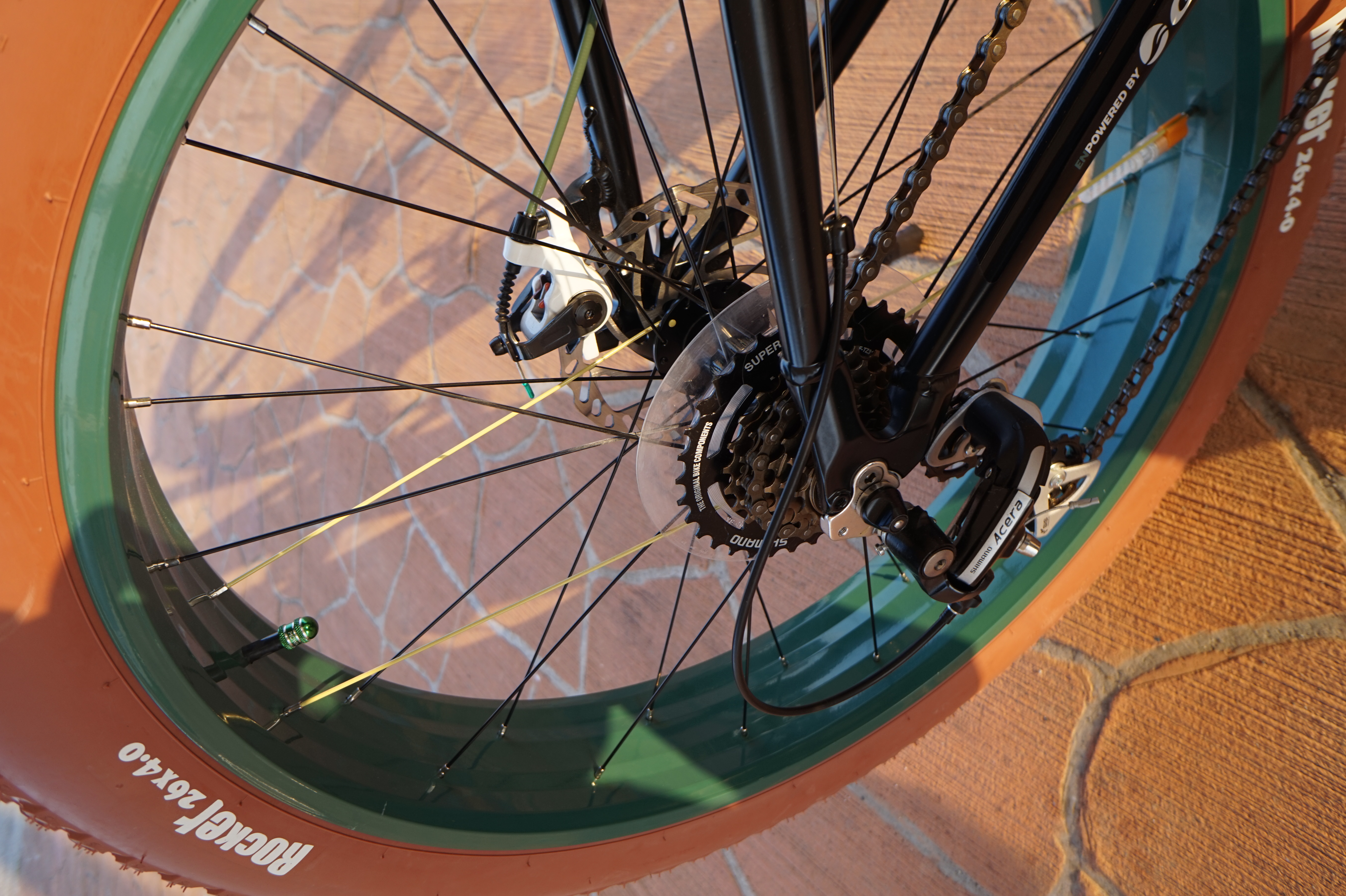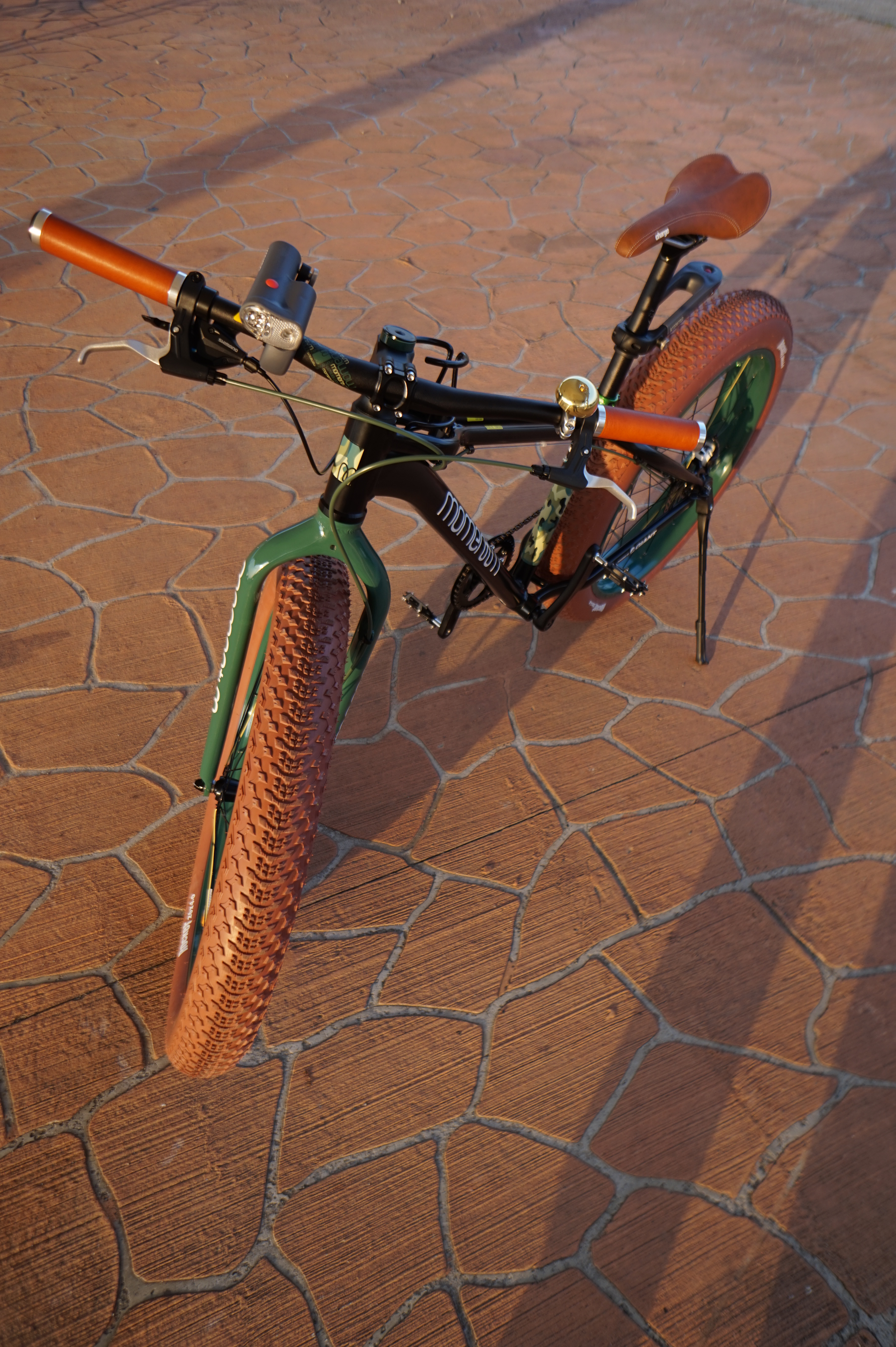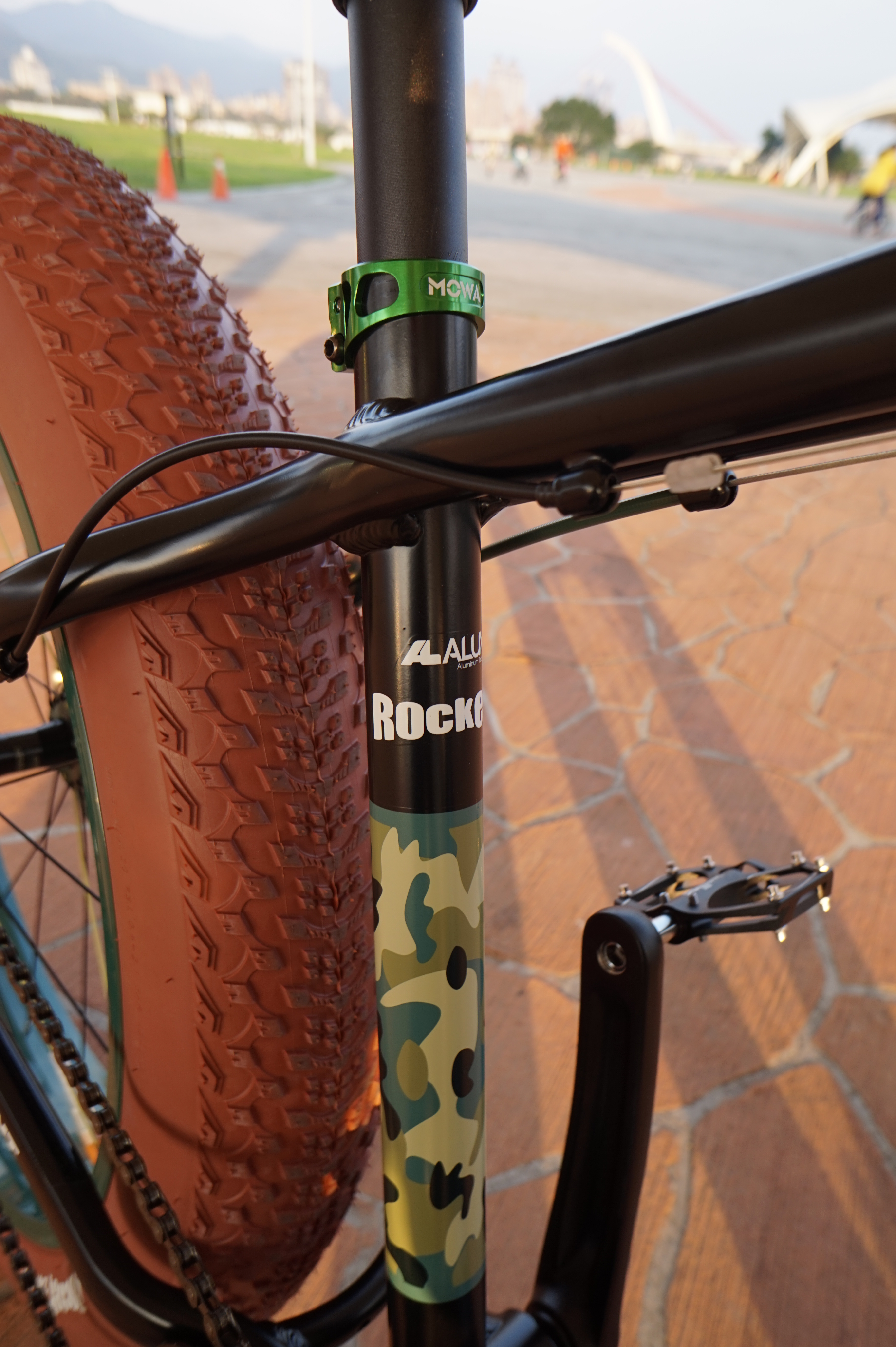 Rocker3胖胎車重裝上陣,試騎&簡易開箱胖胎車吸睛度破表,路人回頭率及訊問度極高。胖胎車可適用於雪地、沙灘及任何路面,擁有很舒適的穩定度。本身搭配七段變速及機械式碟剎剎車系統,迷彩綠及消光黑的車架配色,還有磚紅色的胖胎更是引人注目。我自己再更換配件讓整台車更具獨特性及完整度,有真皮高質感的手握把、咖啡白縫線之座墊、mowa綠色座管束、wellgo m194踏板、曾經得過紅點設計獎的KREIMA前後燈三合一車鎖(前燈組合後燈變成車鎖)、mowa綠色氣嘴蓋、復古式鈴鐺及橘色車輪燈。現在是越來越愛這台胖胎車了~跟大家分享我的喜悅~~