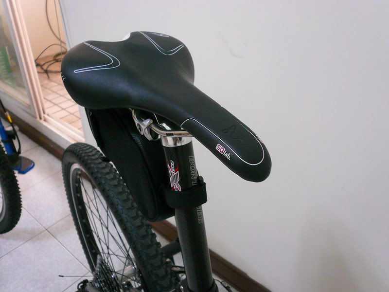 SQ-Lab 611,跟車架很搭,超好坐又好看,不穿車褲都不會不舒服!加上Bontrager X lite座管