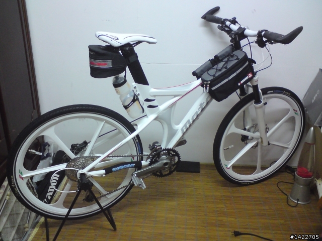 小弟喜歡白色,但是小弟沒有純白癖......所以我選擇了 這個白底,黑色跟金色修飾的碳纖維車架 ,配上2010款 XO 金色 變速系統,洗馬路 白色m575油碟,感覺非常配~~~ 本來想用金色花鼓+白色輪框,但是為了中央鎖死碟,只好牽就這個 MAVIC 輪組