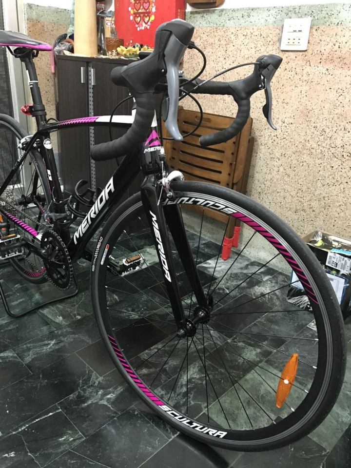 小弟之前本來騎一台隔壁鄰居不騎的登山車那前些日子把車騎壞了又因為公路車實在太帥了本來預算只有6000元但後來爬文入門款前輩們的預算都好高後來抉擇1.hasa R5 2.merida 92-s 3.giant. Scr2在之後呢⋯⋯考慮到家裡附近就是merida旗艦店維修方便而且92剛好換色沒看到實車有看到這台93-s直接立馬衝了目前想找車隊有固定夜騎的或是假日揪團騎車的因為目前都一個人騎我在高雄鼓山~~新手不專業開箱文到此~~~~謝謝