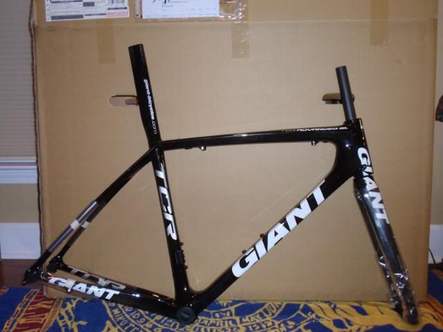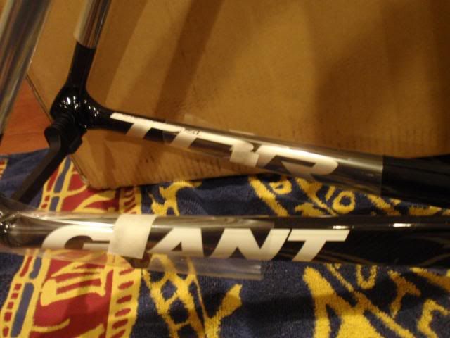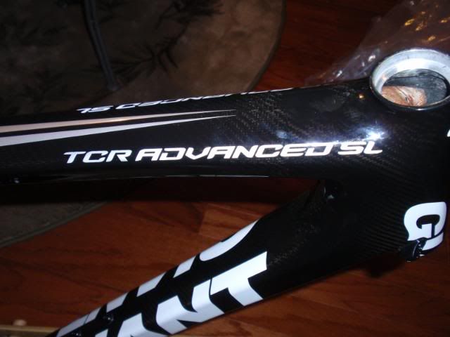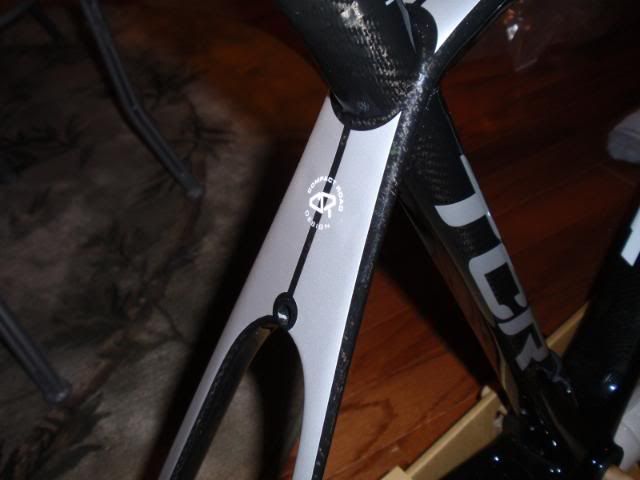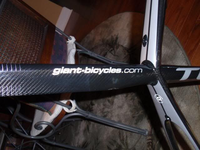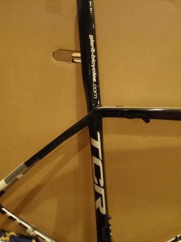 來個全車(架)照~. 車架顏色是碳纖黑配白字;TCR字樣,上管及後叉都有銀色圖裝.