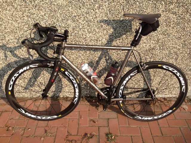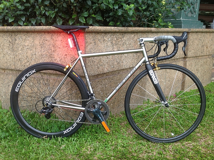 這部車從規劃到落實生產到組裝完畢,經歷了壹年半。我在13年10月中決定要客制雲豹953車架及訂購「無名」輪組,並請劉老師替我設定車架幾何及接洽雲豹及航翔。 車架14年4月中完成。 「無名」輪組一直到14年將盡的當下才正式面世。