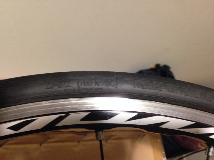檢查了一下, 我的 2014 的 Elite S 真的是 23C (拍的有點糊 orz). 不過這是平行輸入貨.不知跟公司貨是否有版本的不同就是了.目前因為換碟煞款的車, 所以現在輪組拆了下來.Mavic 的低框爬坡輪組, 著重的是輕量與側向剛性, 爬坡時的形變少, 所以可以減少功率的損耗. 輕量, 所以加速快, 減速也快 ... 所以平路維持巡航速度是弱點 ... 但是遇到紅燈或是塞車得走走停停就很合適.當然形變的量, 加速, 這些也與體重很有關係, 體重愈輕就感覺很深, 體重較重的, 可能還是得買 SLS , 跑 0 之類的更高一檔的輪組吧才夠吧? 至少小弟體重 68Kg 左右, 對 Elite S 還蠻有感的就是 至於影響有多少, 如果是進步了 3% , 在騎 50min 的路線, 就是快了 1.5分鐘, 如果上坡時速 10Km, 就是比之前超前 250公尺左右 .... 那是好幾個彎, 看也看不到前車車尾的距離. 但也是只有快 1.5 分鐘而已. 有感無感, 就看是逍遙騎還是跟團騎了