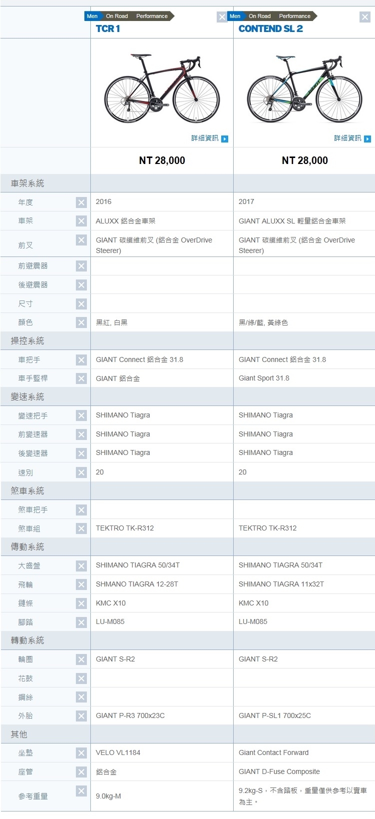 最大的不同應該是一台是碳纖維車.另一台是鋁合金車吧!!!