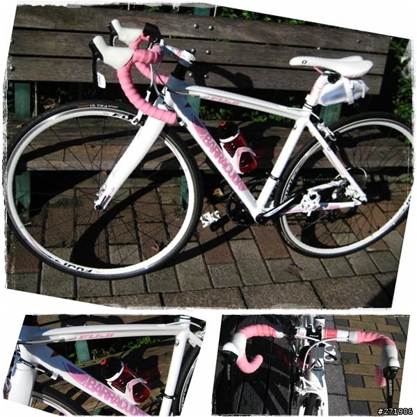 水噹噹的粉紅色 大缺貨喔! 等很久才來~ 而且來的是10年的~ 據說廠商根本沒賺頭...軟腿專用105三盤 (會用105就是因為方便互換輪組 捨棄32T的Apex)耶? 剎車皮竟然是軟木塞 啥!? 這車架配zipp 會不會太誇張?! S牌坐墊 (以前服役的坐墊 現在改服侍女王的屁屁) 粉紅色墊圈 粉紅色水壺架Elite, 顏色簡直一模沒兩樣 當然都要用全白的呀 連走線也是 105小頭 佩36cm小灣把(下把38 cm) 最適合女生 當然要假掰到底 粉紅色車把帶(相信買這款的人幾乎都醬配) 全車照...哈哈 粉嫩的zipp! 燈燈燈! 全車重 7.59 kg 車架真的不重喔!(靠輪組撐起來的) 以上都不是重點~ 重點是...嘿嘿嘿 這才是女王的暫用輪組...跑零分 趕快把zipp拿下來... 配跑零分也不錯啦 (其實給女王騎跑零分也是浪費了 她感覺不出來的)重量就暴升200g了~ (其實都是我的)這才是輪組的真正主人 (假組車 真偷渡 )夫妻車...小粉配小銀.. 把坐墊包都放上去~ 銀跟桃紅 為了將zipp偷渡到手 多花了好多銀子... 但是組車的心情是愉快的^^ happy~我女王也騎騎逃郎~