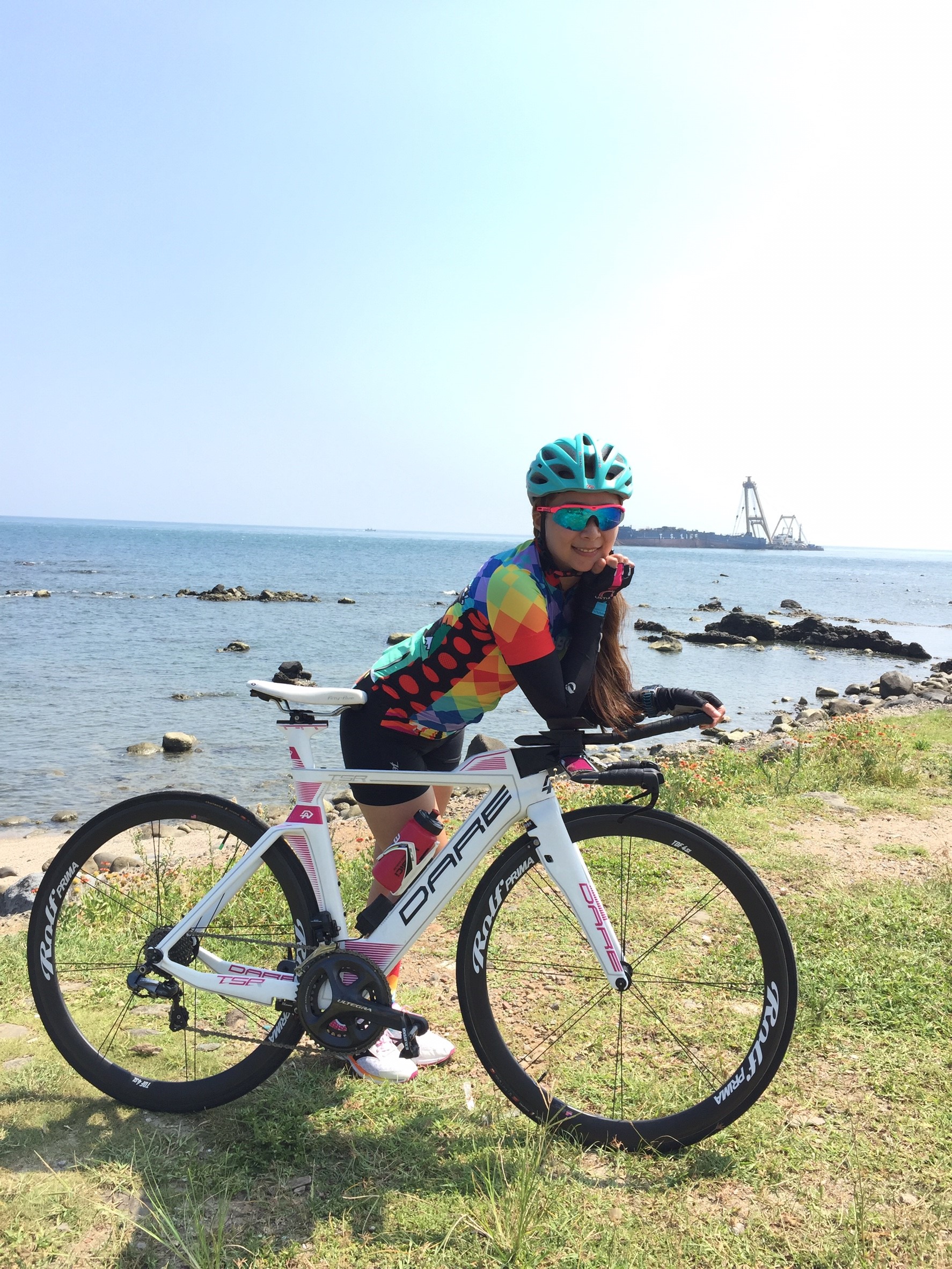 首航就在關島鐵人賽中,由於時間緊迫缺乏練習,騎乘姿勢也尚未適應,感覺踩踏方式在大腿肌力的運用上比公路車還吃重一些,沒能在賽事確實的感受三鐵車威力,這點比較可惜。