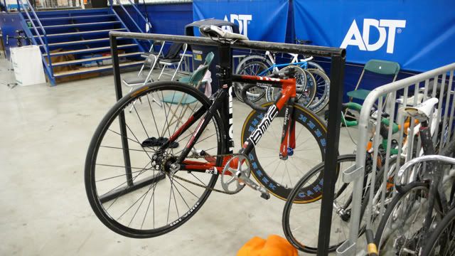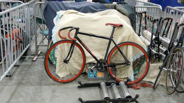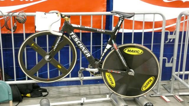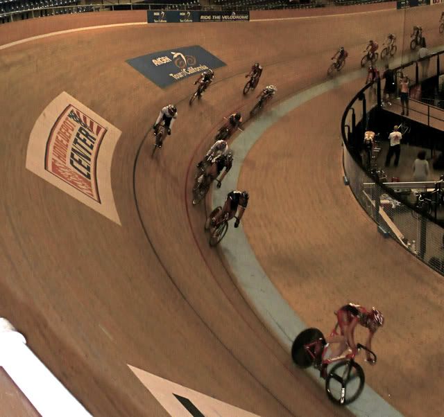 這照片是去年度世界冠軍標賽的分站,不過他們在職業自行車界不叫fixed gear喔,是track,因為不會有甩尾之類的特技動作,就是一直拼命往前騎,有時出現定竿是配合戰術,所以跟玩特技的fixed gear不一樣的。我知道新竹、台中、台南、高雄都有這種場地,但只有台中是木質跑道(露天受風吹日曬雨淋的木質跑道......),其他都是柏油路面,一般應該都是讓縣隊,或是附近中學有在培訓的選手練習,似乎沒有開放給一般民眾使用跑道。然後一般人也不大敢在斜坡上繞行就是了。