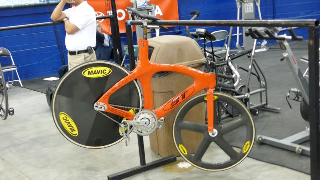 都說是固定齒比啦.XD這些場地車選手最高可以騎到220~250rpm,以48/17可以衝到嚇死人的高速.奧運的時候都接近70km/h...http://tw.youtube.com/watch?v=sVbwngNoHm0回轉速練習.不過看裡面也不全都是水平勾爪的場地車架,有些是一般的公路車車架加上場地車的花鼓跟大盤.