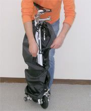 折疊後Strida 5.0可以推著走還不錯。但是看起來只有單點著地,可能很難掛的包包行走可能要實測看看。