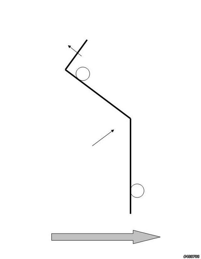 最初會買這台Sakura的原因其實是要拿來當Demo車,主要是量測一些數據供用來改裝好友的16" Mini.不過完工後就捨不得拆了!!至於騎起來的感覺,我只能說一切的辛苦都是值得的.補強版是我自己測量手繪後請廠家幫我製作的,完工後有染黑處理,不知防銹效果如何.後C夾可以正常發揮功能,強度目前測試還不差,只是一定要使用長C夾(57-75mm)才可,不然若使用一般短C夾(43-57mm)則一定要在土除鎖點固定片上鑽孔,不然就是補強版要作一些小修正.前花鼓無作任何修改,只有將前叉外撐而已(84-->100,每邊多8mm,個人認為還在可接受範圍內),而且撐開時既不心痛反而有破壞的快感耶...詳細的補強版尺寸圖(剛剛補畫的,寬度略有修改).模擬煞車作動時的受力圖,作用力剛好被兩土除鎖點吸收(兩圓圈是土除鎖點/細箭頭是受力圖/粗箭頭是車輪前進方向).補強版手繪尺寸圖(原汁原味的喔).完成圖例.