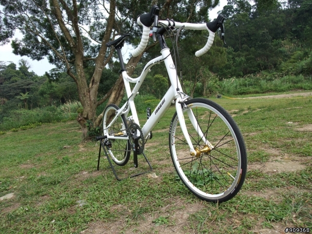 一台鋼管定速公路車,黃白色塗裝,沒看過的牌子(我只認得大眾品牌啦)。