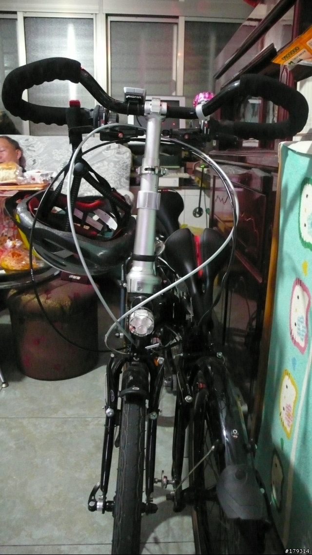 感覺每次女朋友騎的時候坐墊與手把的距離有點過長,所以偶而都01上看看,結果看到感覺不錯的東西"蝴蝶把手",就突發奇想小黑手把變裝大作戰,把原本換的碳纖維手把再拆下來更換蝴蝶手把,入手才一張小朋友(二手的,感謝台中某家G店的老板娘把她使用已久的手把轉賣給我),先暫時直接裝上,再看看有需要修改的地方。先放幾張暫定的照片給各位大大參閱(DIY的不是很好)DIY後的缺點就是豎桿不能摺疊,磁鐵吸不到,摺疊時豎管跟手把就不再多做變動了