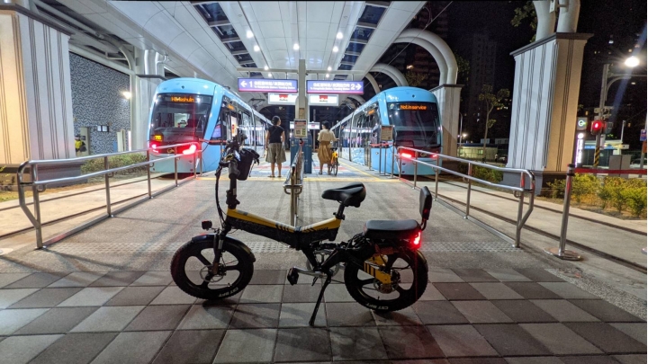 有時時間、路線規劃好,碰到爬坡路段或是逆風,會邊騎邊罵,電動小折就沒這種困擾,一顆電池加腳踩可騎80公里左右,不夠可以再多帶一顆電池,騎到你人沒電了車還有電,現在一台電動小折加買一顆電池大約20000元左右,就能符合你的需求了,還可越野,要運動把電源關掉7段變速還是很好騎,我最近把KHS T-33賣掉,換成電輔車,一個月下來,發現回不去騎小折了,這是上輕軌捷運的照片,同一款有人環島回來了,有人騎上武嶺,像圖中那天,我是開車去淡水,放電輔車下來騎,算是不錯的方式