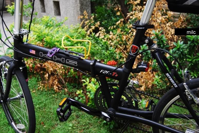 attx1688 wrote:我的比較黑~因系統忙...(恕刪) 呵呵你的T3可能要在多曬點陽光喔我的曬的比你久,所以比你的更黑啦po一些跟大家比較不一樣的好了(其他的在我的部落格:T3 X.T.R.)Shimano SL-R770 Shift Lever (for 10-Speed)不愧是平把用最高等級的變速撥桿,外觀質感和撥動的手感Q度都很優,搭上105 RD-5600 GS後變及11-27國產輕量化飛輪,將原本的27速提高為30速,不過因為齒比過密,所以有時候一次都要換兩檔才感覺得出來。SHIMANO 105 RD-5600 GS黑色長腿後變,這單純就是要黑化,Shimano的公路車系列後腿比較少做黑色的,Ultegra SL的鈦黑色後腿顏色又和T3的霧黑不怎麼搭(講那麼多,其實是因為買不起囉),之後就換上這顆06年的105,對我來說很夠了,反正我是感覺不出它差一級的好壞啦。F20-W中支柱,這就是愛台灣啦,換上這組東西讓我被很多人笑,一支要一點多公斤,在車界一片輕量化的聲浪中,哈哈,真是奇杷,不過,立起來時,真的很穩,而且自己在維修保養時,超方便的喔~,還好KHS很體恤我,有幫它摟空個台灣mark,算是作個小輕量化吧,呵呵...FSA CARBON Pro Team Issue曲柄 大盤 56/39/30,本來是53/39/30,可是總覺得速度無法有效提昇,就找阿找,一般看到的幾乎是KCNC 60T、56T或Dura-Ace 55T的高價大盤,終於找到一片還買得起的平價FSA 56T,當然,缺點就是...重。不過這也讓我偷到一些速度囉~KCNC藍色大盤螺絲,這個最無聊,原來FSA大盤上的是心型螺絲(不是一般內六角,後來向綠洲借一組心型版手來拆換),原本想把5顆一起換掉讓以後維修時更方便的,裝上一顆後,個人覺得很像SONY的藍光DVD Plar的開關,就當作"車身配色"啦!一個無聊的舉動,也造成幾個小朋友離家出走。(齒片好髒喔,忘了拿棉花棒清一清)FSA 56T CNC切工大盤Wellgo WR-1,號稱殺人踏板,培林的軸心踩起來很順,有些人覺得踏板面積太小,我個人是覺得剛剛好,至於會不會『殺人』?上下車時小心一點就好啦Brooks B-17 Standard,記得入手後,第一趟就給它騎破百,痛阿~超痛,不過硬又厚的真牛皮經過騎乘500km以上的淬鍊,它似乎已經符合我的臀型啦,現在坐起來很舒服的,想要換座墊的朋友,真的可以試試。KCNC 31.8mm 座管束用於坐管,精準的切工,簡潔的線條,重量才23g喔,拿起來比塑膠玩具還輕。以上是我的黑化T3,於96年6月購入,因為現在把心思放在Brompton上,所以算是完改囉