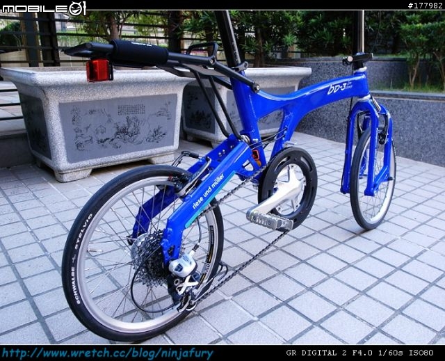 小弟也來報到一共有兩台愛車除了BIRDY以外順便插花一台一樣是太平洋代工的LGS JEDI-R兩台皆有小小的改裝BD-3以XTR登山系統為主JEDI-R以DURA-ACE公路系統為主01帳號:ninjafury型號:08 BD-3 (插花LGS JEDI-R一台)居住地:台北市出沒地點:天母、石牌、中社、北市自行車道Blog/網站:http://www.wretch.cc/blog/ninjafuryBD-3改裝清單:SHIMANO XTR BL-M970 V-BRAKE 煞車手把SHIMANO XTR SL-M970 RAPIDFIRE 輕量化 3x9 變速手把SHIMANO XTR BR-M970 V-BRAKE V煞車座SHIMANO XTR RD-M971-GS 短腿後變SHIMANO XT CS-M770 11-34T 後飛輪SHIMANO ALFINE 一體式大盤+原廠56T齒盤TOKEN 陶瓷BBCHRIS KING 銀色頭碗CONTROLTECH CARBON 560mm碳纖維手把台版BIRDY 25度可調式立管前後正日本製150%彈簧SHIMANO XTR 前輪快拆SCHWALBE STELVIO 18吋輪胎SCHWALBE 內胎 (高壓襯帶已經更換)日本MKS PROMENADE EZY 快拆輕量踏板BIRDY原廠貨架SELLE SMP PRO 黑色皮面座墊ERGON GP1-L人間肉球手把KMC 九速銀色鍊條另外插花一台LGS JEDI-RJEDI-R改裝清單:SHIMANO DURA-ACE FC-7800 53-39T前大盤SHIMANO DURA-ACE FD-7800-B 直式用前變SHIMANO DURA-ACE RD-7800-GS 後變速器SHIMANO 105 CS-5600 12-27T 十速後飛輪SHIMANO XTR BL-M970 V-BRAKE 煞車手把SHIMANO XTR BR-M960 V-BRAKE V煞SHIMANO SL-R770 十速變速手把TOKEN 陶瓷BBCHRIS KING 紅色頭碗CONTROLTECH CARBON 560mm 碳纖維手把BIRDY 10度可調式立管前日本製200%彈簧後避震器 DT SWISS SSD 190L + FOX RP23手編輪組(CHRIS KING花鼓+ALEXRIMS DA16空框+DT SWISS單抽鋼絲+紅鋁頭)PANARACER MINITS LITE 20x1.25 輪胎馬牌CONTINENTAL 內胎CONTROLTECH CARBON 鈦軸快拆日本MKS PROMENADE 輕量踏板SELLE SMP PLUS 黑色皮面座墊ERGON GP1-L人間肉球手把KMC 十速SL中空黃金鍊條LGS JEDI-R的車友歡迎加入JEDI同學會每個禮拜都有約騎喔