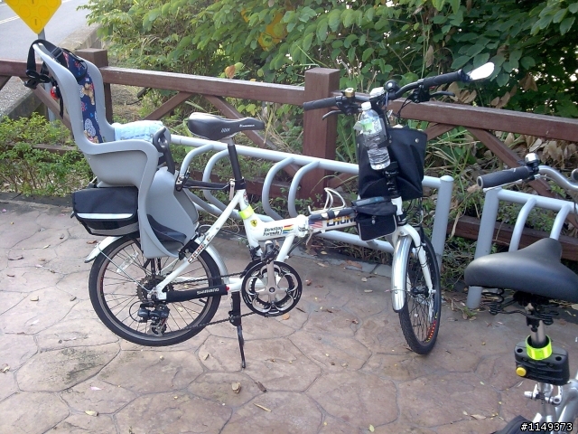 經過幾天的研究後 終於把坐椅裝上車了 因為小孩比較大而且個人覺得用貨物架坐後面較安全 所以就用這種方式來載小朋友(還有版上萬能天神大大的建議指導) 供有興趣的朋友參考坐椅是在網拍買的大概6百多元 貨物架不是原廠的 我是在網拍一個叫阿亮單車的賣家 賣的加強型萬用貨物架可負重25公斤 貨物架比原廠還高所以腳踏不會打到小朋友的腳 前面的支撐桿本來是鎖在後叉的兩邊 我把它改到上面 再買長螺絲鎖起來 很簡單的 這幾天試騎了一下感覺還不錯 只是下車時注意前輪重心要往前 前輪才不會浮浮的