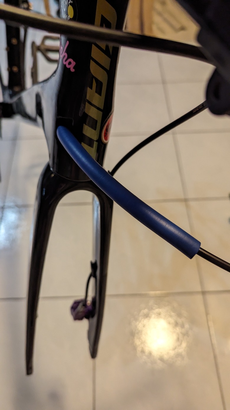 今天花了一點時間搞後煞我油管用吸管纏膠帶對接當引線今天除了後煞還順便換了外胎(GP5000/32c)碟盤Jagwire PRO LR2鏈條ztto/12速鏤空明天有空再出去騎一下穿線時有順便加了矽膠條可以防止油管撞車架產生的異音前幾天騎的落雨松,補個圖