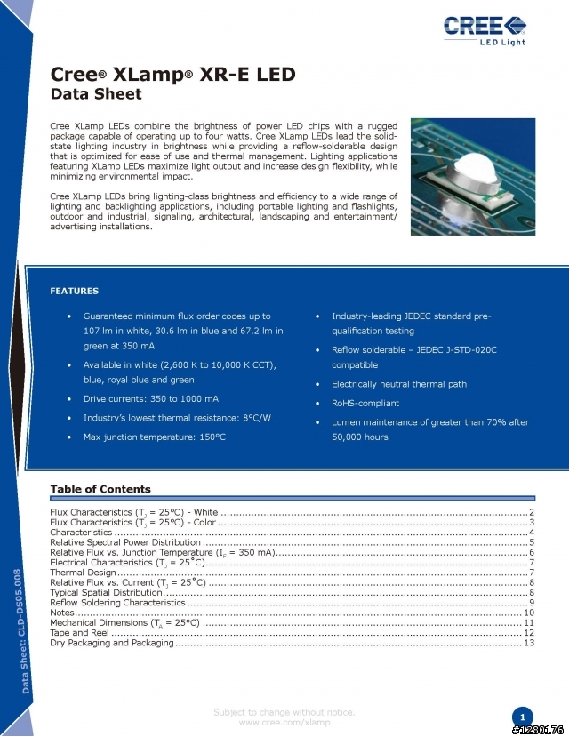 我想討論提實際數據會比較有意義,我有朋友在外商上班,他們公司就有代理CREE的LED,我要了資料po上來各位自己看!