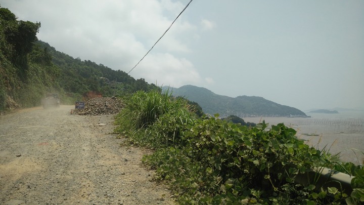 從地圖上來看,寧德市到霞浦縣不免要騎上山路,但實在看不出來到底山有多高,坡有多陡,只能實際走看看才知道。身穿雨衣,腳踩拖鞋繼續冒雨前行。