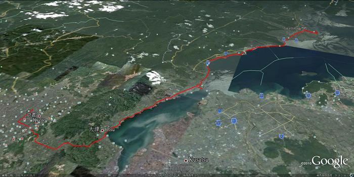 終於到了大津市區中心 也就表示要轉接一號國道了 一號!聽起來就很威阿! 這邊有一各特色是鐵軌直接開道馬路上?難怪覺得這電車…看起來好像火車阿~~過了市區就開始爬山,想要到京都果然是沒這麼簡單!! 出了山區,終於到達京都山科區, 但是騎著騎著想說怎麼一直沒看到熟悉的地名,看了一下 gps….還有一座山!!!!