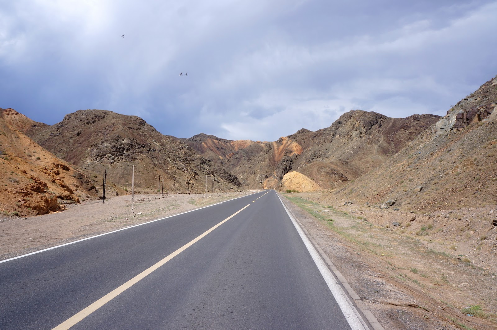 離開城市很快的植被也走到了盡頭,公路直挺挺地走進光禿的黑山,上空雲層匯集遮住光明的前程。我們知道艱鉅的挑戰就在眼前,進山前向修路大哥要些水加滿水壺,修路大哥告訴我們在二十里外有道班,不然就要到五十公里外的鐵廠溝鎮才會有人煙。
