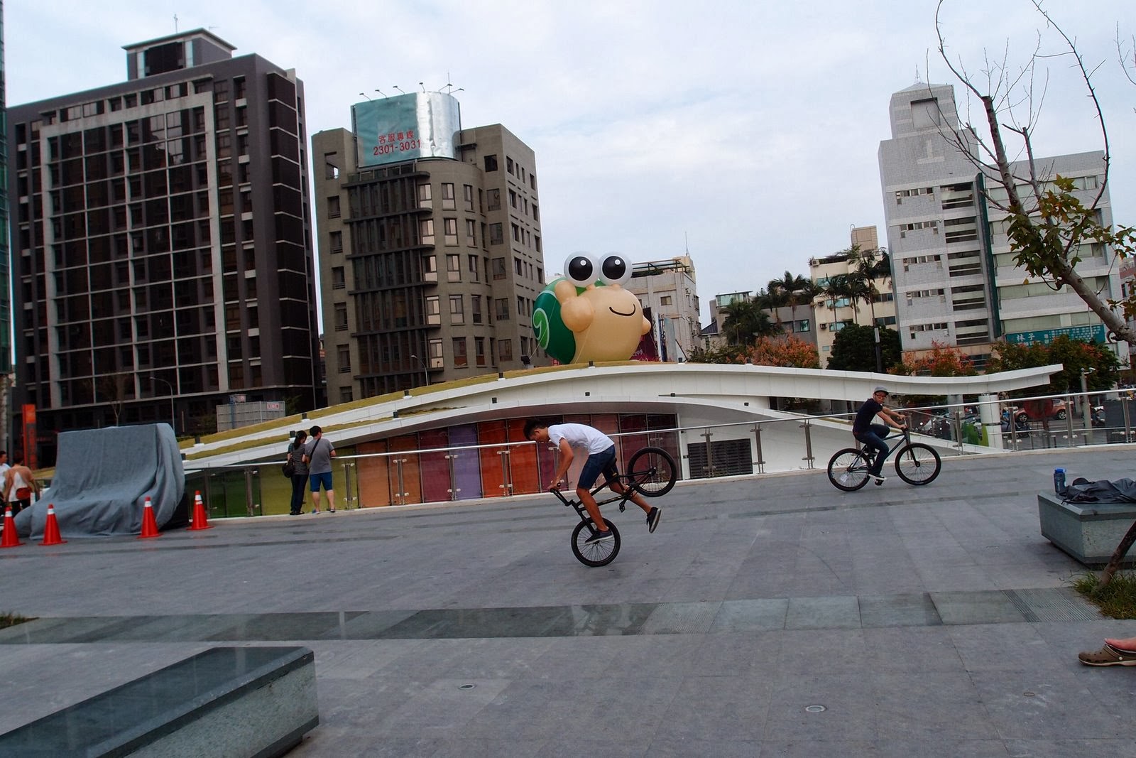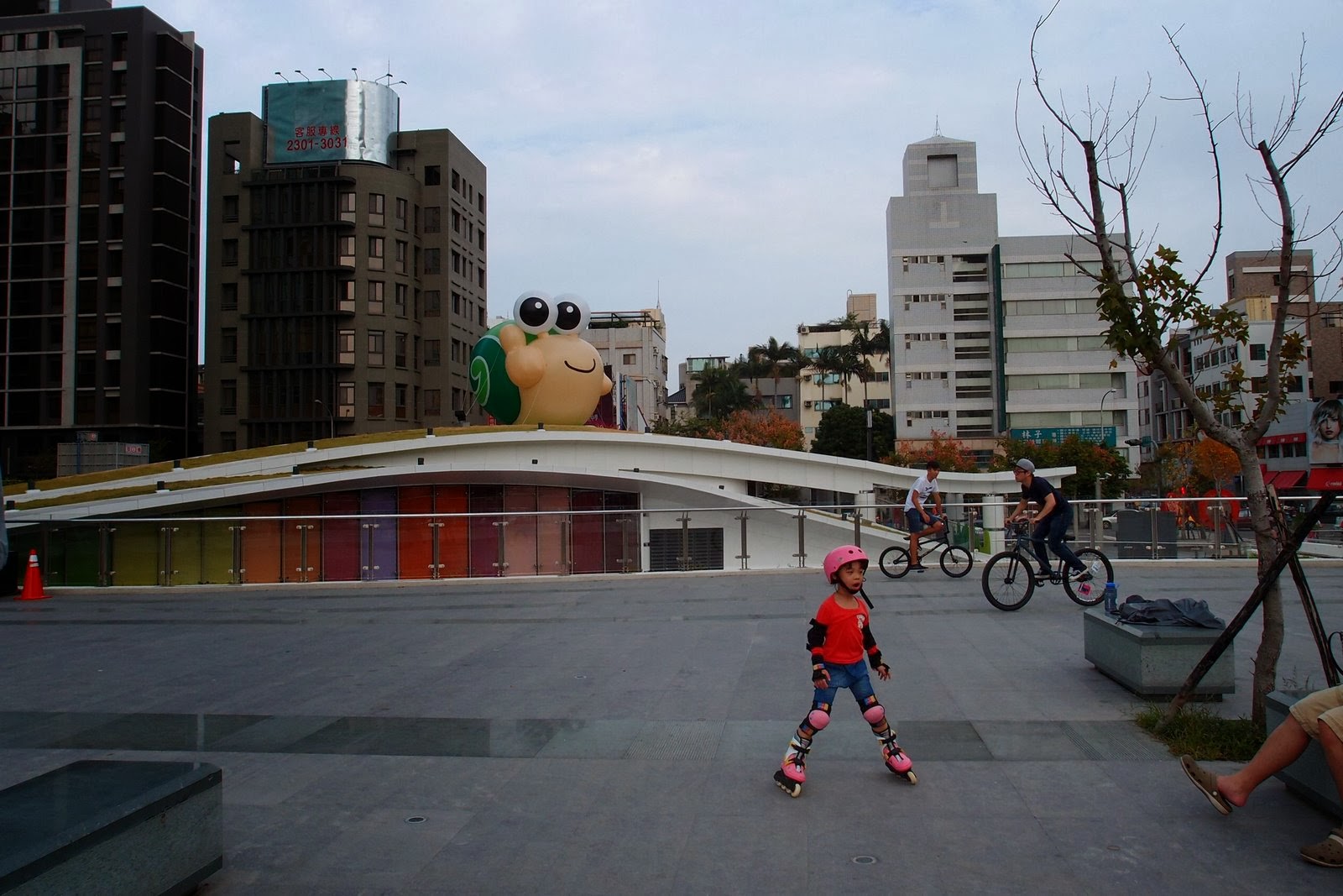 對於台中人來說,勤美誠品前面這塊大草皮,是全家休閒的好去處。一到假日,這裡就會出現帶著小朋友的家長在這裡從事各項活動,不管是踢球、放風箏,或是騎自行車、學步車,還有不少人純粹只是坐在草地上享受溫暖的陽光。不過,正因為它太受歡迎了,要在這裡草皮周圍找到停車位,並不是容易的事。往往只能停到誠品商場的停車塔或是對面私人的露天平面停車場。這些地點不是收費較高,不然就是距離太遠,並不方便。