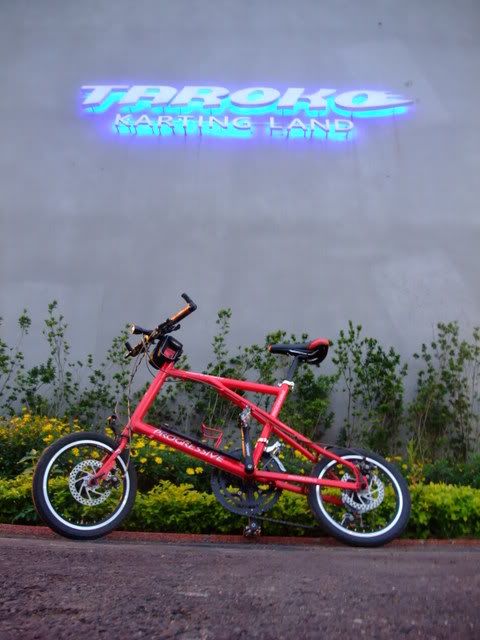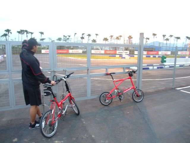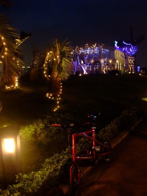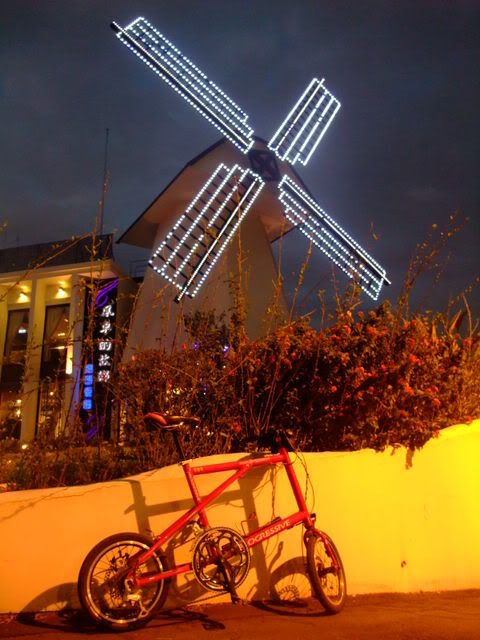 下班難得的好天氣~不容錯過~馬上約同事一同騎車嚕~這次是自行車道路線~桃園南崁興建的自行車道~沿著南崁溪從南竹路一直到桃園的中正路尾那~~算是在都市中找到可以悠閒自在的車道~不過南崁溪的味道有點不好聞勒~哈~!!到達同事家先幫小辣拍一張~!嘿系傳說中的中悅嗎?紅配綠拉~!自行車道很快就騎完了~!接著來到~卡丁車場爬上中正陸橋~鳥瞰國一高速公路~風車的故鄉~沒吃過~~上網查他的單價不便宜外面看看就好了~led的風扇喔~看到愛心~小辣也來愛心一下~~