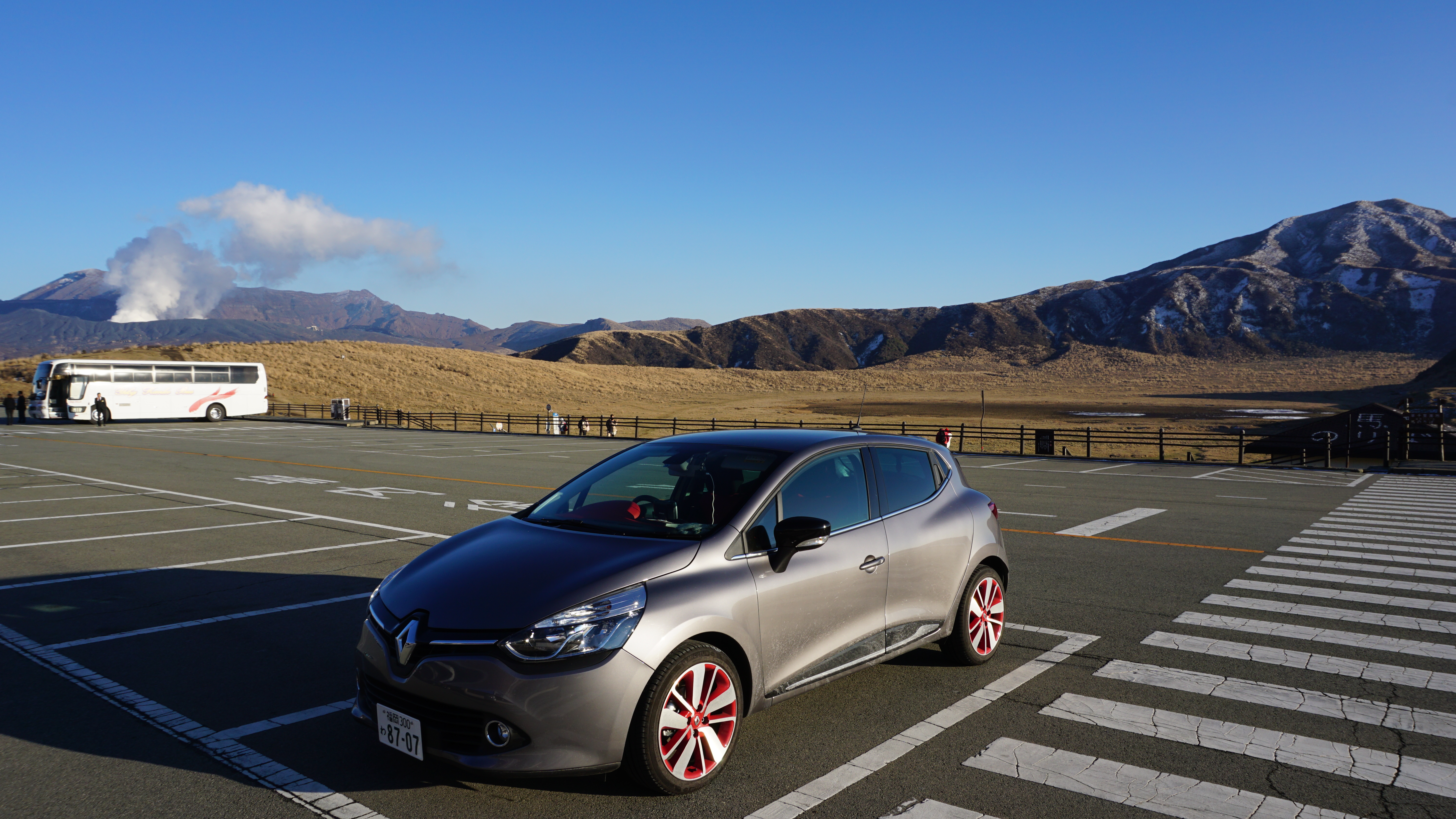 出發阿蘇火山搂~途中有遇到地上沒受到太陽照射仍然結冰的狀況 ESP有作動 限制了動力的輸出