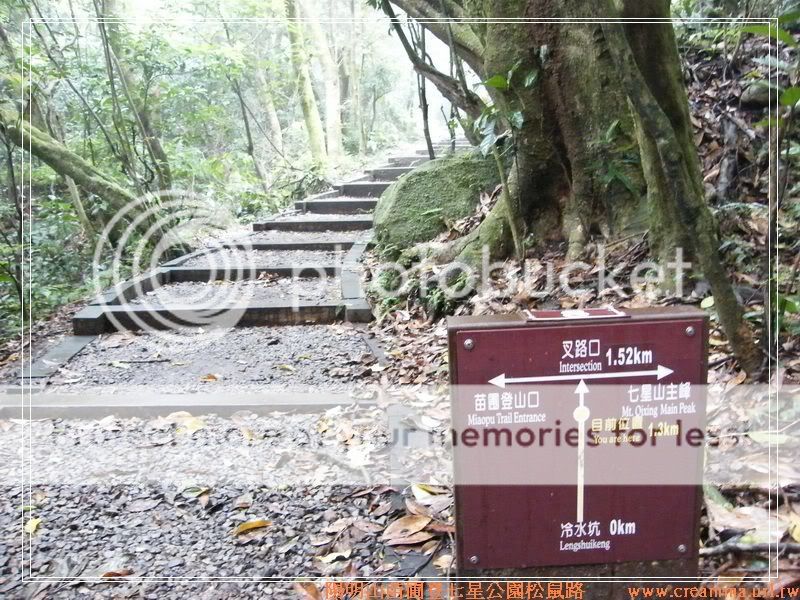 本來要把gps 檔寄給飛團長...沒想到檔案沒有存好,航跡內容是空的...只好先路線重點再整理一下.松鼠路路線介紹..冷水坑--七星公園--苗圃登口不論你如何上山.先到冷水坑服務中心.再往冷水坑站續行中湖戰備道路.開始爬坡後就看到左手邊有一鐵門.由此水泥路上去..很陡.....沒多久夢幻湖就出現在眼前....繼續走水泥路上山至教育電台發射站...這裡是此行最高點.不用再上坡了.看指示牌往七星公園....公園備有洗手間.有排水溝往苗圃方向走...就在這個步道接軌處.往下騎...石階步道走.過2-3段的陡階梯.....來到此路口..注意往左下騎去....樹根路正式出現...從第一座木橋旁下來.接上步道...再走過這座橋順著步道石階下去...往冷水坑方向.木頭沙石步道結束之後就會見到右手邊叉路.往下..開始好玩了....過這個小溪..爬升一點點...記得會經過這些大石頭叉路有步條走右上.....(左邊好像也不錯玩....)再來路線應該都很好走了.就貼著石階步道一直在樹林中穿梭...出口接到陽金公路苗圃登山口.在涼亭前走左邊人車分道往服務中心去...第二停車場角落這個路口..騎下去...小橋.階梯.竹林由農家後方穿出...出口就到湖山路...