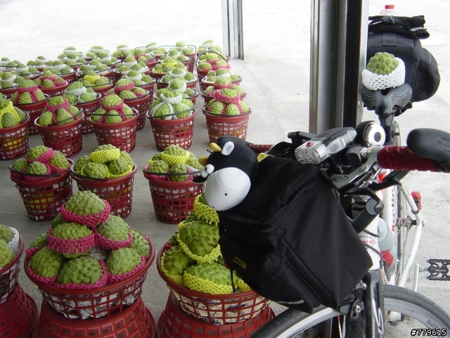 【970302環島day4 玉里>大武】起床5:10一樣的從軍模式,天色未亮,我們就出發囉。清晨的山間,頗具涼意。一出旅館大門,涼颼颼的風馬上喚醒還沒睡醒的細胞。置身晨霧中。霧氣凝結成小水滴,落下。天色漸漸亮了。道路終於露出臉來。山間景緻。晨霧從眼前輕輕飄過。下山了。依舊處在雲霧飄邈之中。太陽偷偷躲在雲層後…山嵐雲霧圍繞在山腳邊,久久不散。耀眼的陽光。前方的路也明亮起來。池上大橋。我要走過台9線的每一座橋,越過每一座山。騎單車最能感受路面的起伏。這時候不得不佩服變速器這神奇玩意兒,到底是誰發明的呀,實在太好用了~感謝它幫助我爬過一個又一個的上坡。關山車站。來到關山就是要吃便當的啦。早上9點,大部分便當店都還沒開始營業,看到車站外這家老店裡,已經有人在忙進忙出,抱著小小一絲絲期望詢問店家現在買不買的到便當。哦耶~原來不用到中午也買的到便當耶。店家當場為我們現做便當。很開心的買到四個便當~很道地的鄉土菜色。肚子超餓的,即使早上9點吃關山便當做早餐也不為過。小顏妹吃的兩眼發直。這位曬的滿臉雀斑的太太,也是不計形象的餓鬼演出。騎乘在台東的路上,又是不同的感覺。陽光瀟灑的直曬著,路的兩旁是一片片稻田,遠方有山當背景,有時會瞧見火車從田野間穿過。遠遠看,火車小小的一串在跑,像極了樂高世界裡的玩具火車。總之,一切大自然的不像話。(現在回想,竟然都沒有當時的風景照片…因為路太直太好騎了,就一直騎一直看風景,很少停下來拍照~)路旁,還有許多甘蔗田。快到收成的時節吧,甘蔗長的挺高,高的開始彎腰歪斜。於是每兩叢甘蔗頂端被互綁起來成「人」字型,一撮一撮的,很像小娃兒頭上的髮髻。路邊甘蔗攤。低調的年輕人,熟練的削著甘蔗。我們在這邊買了冰涼的甘蔗汁。真的好甜。路過一大片草莓園。草莓家族。大的小的,紅的青的。原來草莓的花是長這樣。中午時分,來到卑南市區,為的就是這裡。雖然天氣有點熱,賣熱湯的店裡還是人多到要排隊等位置。卑南豬血湯。超大塊,很紮實的豬血。灑滿韭菜提味,湯裡還有一些豬腸油花…很有味,但喝到後來個人覺得小油。大腸。清爽的口味,可搭配青菜跟沾醬一起吃。粉腸。一樣屬清爽口味,沾醬後跟薑絲一起入口還挺不錯吃的。米腸。蒸煮的糯米腸,軟軟的口感,淡口味要沾醬。店裡另一特色,號稱「天下第一辣」。我不敢吃太辣所以不知道天下第一辣是如何辣~吃過中飯,小周要搭火車回高雄老家了。臨別前來個合照。這時才發現四個人騎的車還真是大不同,小折、登山車、公路車、旅行車,什麼車都可以來環島。什麼車都有環島團。吃飽飽,今天要多跑一點路程。原本預計今天要住在太麻里,後來決定要多走一段路,要拼到大武去。一路騎呀騎,面對一望無際的路,騎到好想睡覺,只好第一次出動MP3來聽音樂提神。一路騎呀騎,有護膝包覆的雙腳也開始沒力了,膝蓋後方彎曲處因護膝的束縛及摩擦,開始出現不舒服的感覺。環島第四天,終於累了。騎車疲累時唯一的樂趣就是看看小吉。因為小吉很輕,原本看著前方的小吉會被風吹起,變成下巴朝上倒栽蔥,那模樣就像是小吉無辜的抬起頭看著我~超可愛的!來到台東,一定要吃的釋迦。一排排一籃籃滴釋迦,每一粒都超大顆。我跟小顏妹買了三顆來吃,老闆看我們騎腳踏車環島,還當場剖了兩顆鳳梨釋迦招待我們。台9線399 km。是還不到台9線終點,只是覺得399這數字感覺夠長了。騎了一整天山線,這邊難得看的見大海。太麻里到嚕。可惜現在不是金針花的季節。之後要繼續加碼行程,越過一座小山到金崙,再拼到大武去。金崙,遇見讓人精神為之一振的神秘客!瞧他全副武裝,精神抖擻,充滿幹勁的模樣~!哇哈,忍者龜耶~~藍色眼罩的,是叫啥名字?拉斐爾?有人知道還有一種兒童版的翻譯嗎,依據四種顏色來取名,我只記得紫葡萄跟柳丁花,忘記黃色跟藍色叫什麼了。互相自我介紹一下。忍者龜:「牛小姐打那兒來呀?」 小吉一臉傻樣的還在想。忍者龜的主人現身~同事組成的三人環島團,從台南出發,逆時針環島第二天。來跟兩大吉祥物合照。忍者龜超靈活的,手腳每個關節都可以轉動,可以邊換好多pose。忍者龜主人見我對牠愛不釋手,本想將忍者龜割愛給我,順便告訴我這隻忍者龜的身世…據說他們公司的人,每個月要輪流帶忍者龜出來遊玩~(不知是哪家公司的,這種規定還真有趣~)呃…這重責大任我實在不敢承擔,幸福的忍者龜啊,你跟著你的主人們好好享受單車環島的樂趣吧!環島車友合照出發前來歡呼一下。忍者龜振臂高呼「加油GO!」我們家不成才小吉…不知在看哪裡,依舊狀況外的呆樣…今天住宿眾多車友推薦的輔都旅社。旅社很復古懷舊,它的前身好像就是50年代的宿舍之類的。住宿在這,很符合類當兵環島團的從軍精神…。洗澡時,聽到外面下起大雨的聲音。準備要外出吃飯時,雨也剛好停了,穿著拖鞋大喇喇閒晃過大馬路覓食,找了家店,吃了冷掉的自助餐就是今天晚餐。大武再往南走就進入南迴公路切過山區到屏東縣內,這裡是最後一個補給站。在7-11採買一些補給將HANA醬的前車袋裝滿食物,再跟著史丹利將車子鏈條清理一遍,好迎接明日的南迴公路。第四天,終於感受到疲憊,真的很累。努力用擦勞滅按摩著痠疼的雙腿,雖然累,還是滿心期待接下來的旅程。今天突破騎單車