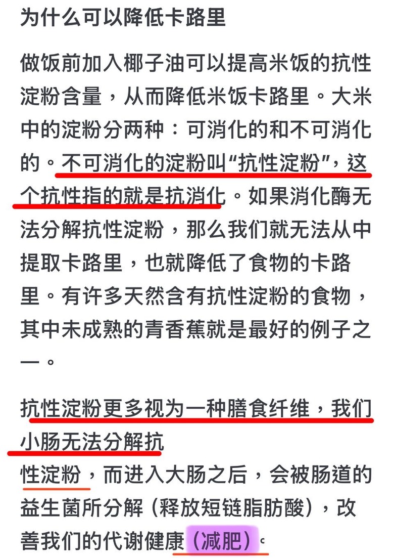 此外據研究發現,將白米放涼再吃,抗性澱粉的含量會從4%增加到了14%;而紫米因其澱粉結構,放涼後抗性澱粉比例仍低,亦即無法降低熱量,也無法幫助大腸中的益生菌。