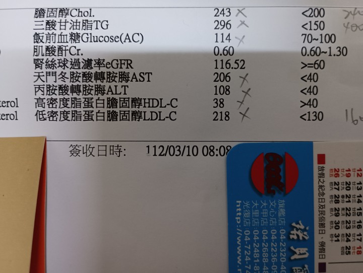 衛福部的官網↓總膽固醇的數值與高低密度膽固醇之間的關係 閱覽次數 41845在三酸甘油脂小於400時,可用此公式計算低密度脂蛋白膽固醇:LDL-C = 總膽固醇 - HDL-C - TG/5低密度脂蛋白膽固醇:LDL-C高密度脂蛋白:HDL-C三酸甘油脂:TG換言之↓總膽固醇 = 高密度脂蛋白 + 低密度脂蛋白膽固 + 三酸甘油脂/5ps.另外,您的肝臟正在發炎中,要注意,快找原因吧