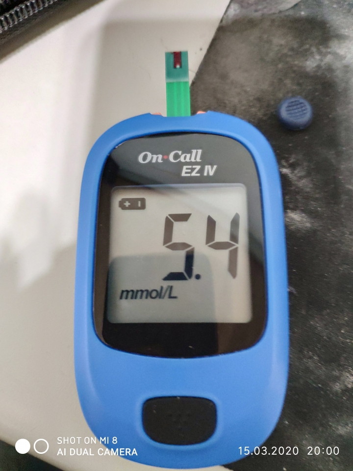 做完十分鐘啞鈴運動有點喘手腳有點抖,,,休息十分鐘後正好八點量飯後兩小時血糖,,哈哈 漂亮的5.4....