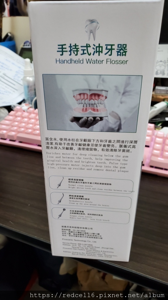 [水]果然是大自然最厲害的清潔工具之一,這次筆者體驗Proscenic浦桑尼克JL-550 脈衝水柱無線攜帶手持沖牙機,全機有IP7最高防水等級認證,全機均可水洗,外型精巧好看,機身有貼心的防滑凸點人體工學貼心設計,持握穩固,LCD螢幕面板可以充分顯示清潔模式、功能及水壓等操作資訊,有傲視市售同級產品的150ml超大水箱(加滿水乙次,可持續噴水約四十五秒),搭配一分鐘一千二百次高頻脈衝水壓來強勁清潔口腔及牙齒,Proscenic浦桑尼克JL-550 脈衝水柱無線攜帶手持沖牙機貼心提供三段模式(標準模式、輕柔模式、強弱交替脈沖模式)可以輕鬆一鍵按壓啟動,機動抽換搭配附贈的三款專業噴嘴(標準噴嘴、舌苔噴嘴、矯正噴嘴)可以徹底清潔牙齒及齒間縫隙,讓口腔遠離牙菌斑及牙結石等威脅,更讚的是超大容量鋰電池設計,只需無線感應充飽電一次,就可以單獨高續航力使用近一個月(三十天),筆者過往有使用過多款手動及電動沖牙器,但往往不是受限於水壓及噴力不足、水箱容量過小等因素造成無法徹底進行清潔,這次使用這款Proscenic浦桑尼克JL-550 脈衝水柱無線攜帶手持沖牙機可以說徹底改善了上開這些缺點,水壓強勁、無線使用、機身精巧方便好攜帶,Proscenic浦桑尼克JL-550 脈衝水柱無線攜帶手持沖牙機搭配Proscenic浦桑尼克H600電動牙刷來進行口腔保健,更是相輔相成,讓您清鬆擁有一口清潔乾淨好牙齒。
