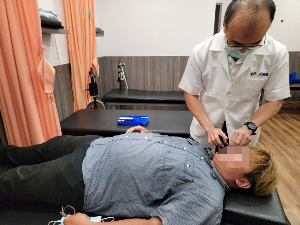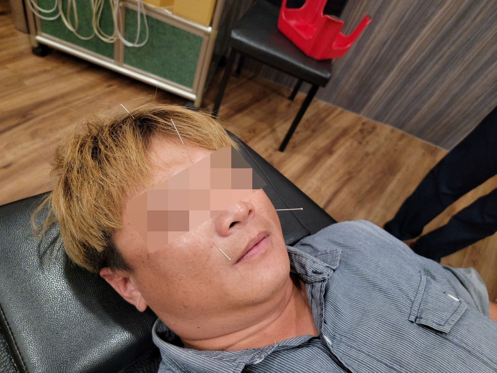 ▼由於我症狀比較嚴重,醫師還另外幫我針灸加強療效。看我臉扎著針,感覺好痛!但其實還好,沒什麼太大的感覺!