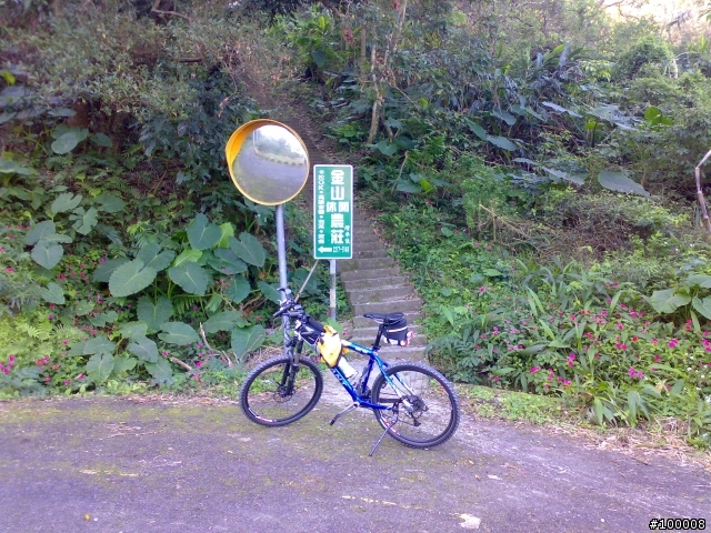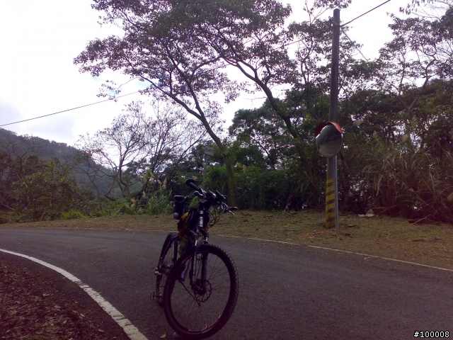 往上路標居然說會到北宜的什麼雙峰國小.(因為此時檔位已是中盤了,有自知之明,不可能用中盤走往上的陡坡,所以我往下滑)