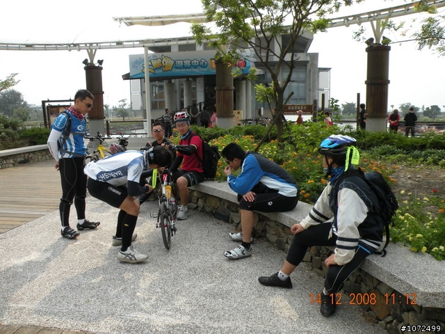 今天原本有兩團! 前一天晚上還再猶豫要去哪一團,想說早點起床再決定,結果睡過頭,起來已經七點了,於似乎想想說,那就去個情人碼頭就好,早上在鯤笙門路吃了一個三明治,然後就一路慢騎!到了情人碼頭,遇到從台中環島的車隊,剛好他們今天要去恆春,且走的路線是南墾的路線,所以我心念一轉,於是決定跟著她們一路到大鵬灣!順便測試一下時間,於是乎就開始跟著它們,在台17線的時候,他們跑的也蠻快的至少也都三十四五左右,到的機場的休息點,看著它們在吃東西,自己也有點受不了,經過詢問,他們也非常好客,於是補給了香蕉跟餅乾,然後一路衝到東港鎮,到的時候已經十二點了,稍為繞了一下,就拆車坐火車到保安,然後在自己騎車回家,不過一路逆風,真是說不出的...阿. 不過回程時組車發現車架後面耳朵有點歪掉,不知道是在擺的時候哪裡沒弄好,有點心痛不知道是否可以處理.