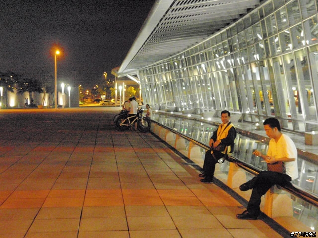 2008.10.07夜騎《高鐵台南站》寫真破傻瓜相機,拍得不佳,請見諒唷!布大的火鳳凰(五告水)↓哈豚的戰馬(SARS)↓小朋友的玩具(俺的卡打車)↓布大↓哈豚↓今晚高鐵很冷清↓小貓兩三支↓真的沒什麼人,和平常差好多喔↓3人照樣開團,今晚騎的很爽,感謝布大、哈豚一起同樂↓左→右:哈豚、布大、king。