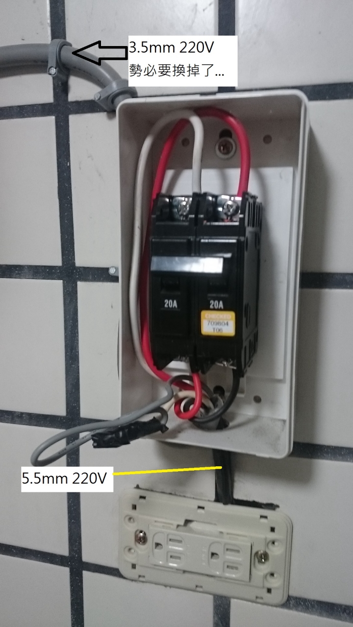 5.5mm的線路中,有分接兩個插座,剛好都在廚房;烤箱+飲水機使用中