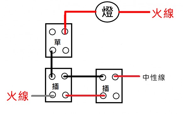 味味A wrote:大家好剛剛想換新插...(恕刪) 綜合樓主的敘述與測試,個人認為電路接線如下:(雙切開關看起來沒問題就先不管它)電燈開關切中性線當然是不對的,但就是有人這樣接,認為可以控制電燈就可以了。